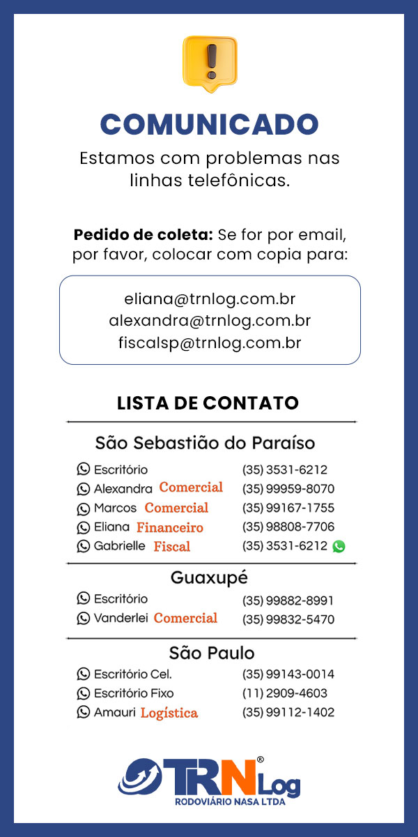 A Trnlog a mais de 20 anos no mercado, assume o compromisso de buscar e atender a necessidade e o aumento da satisfação de nosso clientes. Prestando uma logística de transporte completa para cargas fracionadas e lotação, com uma frota diversificada de veículos, transportando sua encomenda com qualidade e rapidez, contando com uma equipe de profissionais qualificados, prontos a receber sua encomenda desde as coletas até as entregas.